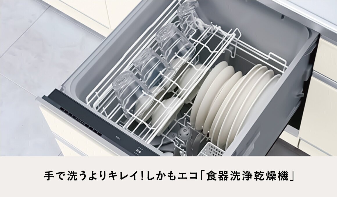 毎日の家事が軽減されるだけでなく、手洗いでは不可能な50℃以上の高圧洗浄によって、洗浄工程でしっかり除菌されるので安心。ガンコな汚れもすっきりキレイに洗い流します。