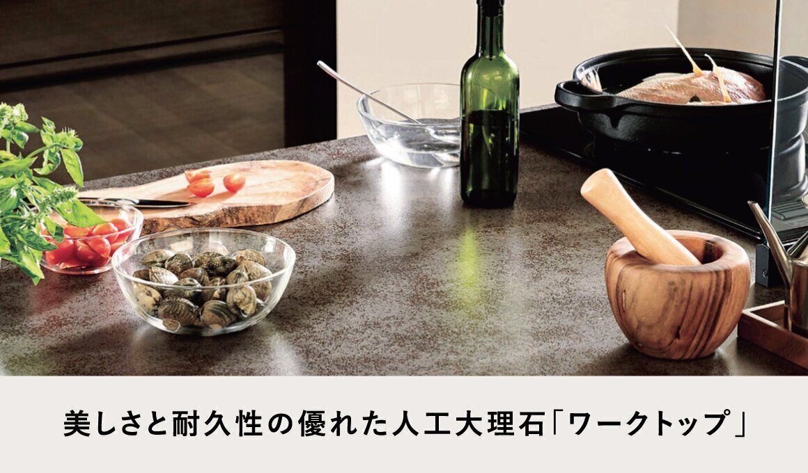 インテリアに合わせてカラーコーディネートができ、耐久性にも優れた人造大理石。