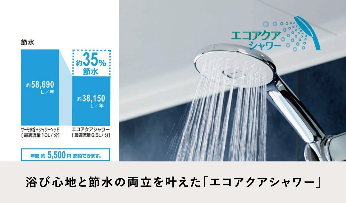 さらに最大48%の超節水で、省エネに大きく貢献。浴び心地と節水の両立を叶えたシャワー。