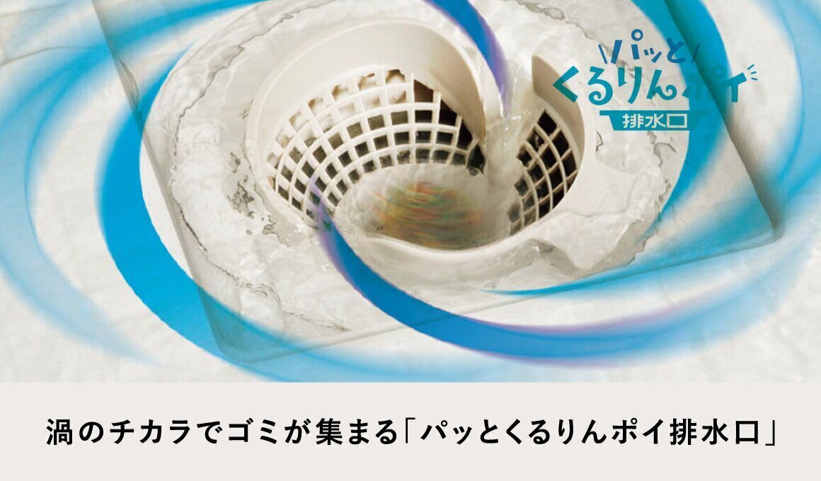浴槽のお湯を排水するときに、排水口内に渦を発生させて、排水口にたまった髪の毛やゴミをパッとまとめて捨てやすくします。