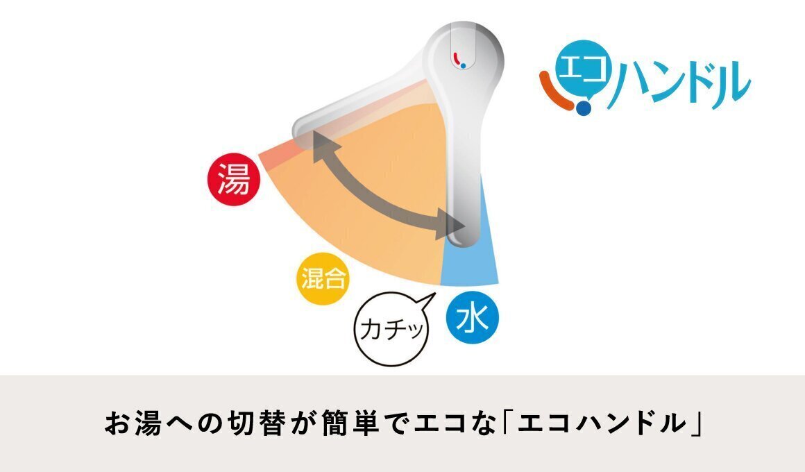 よく使う正面のハンドル位置で「水」を出す省エネ設計。