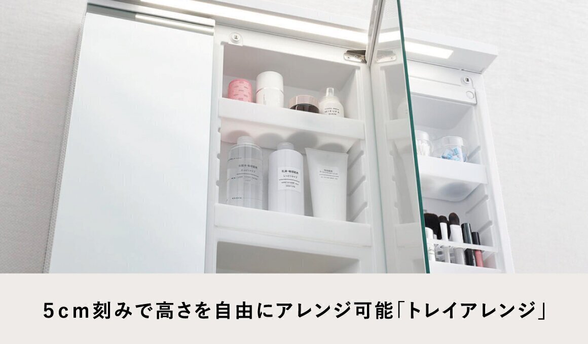 入れるものの高さに合わせて、5cm刻みで高さを自由にアレンジ可能。