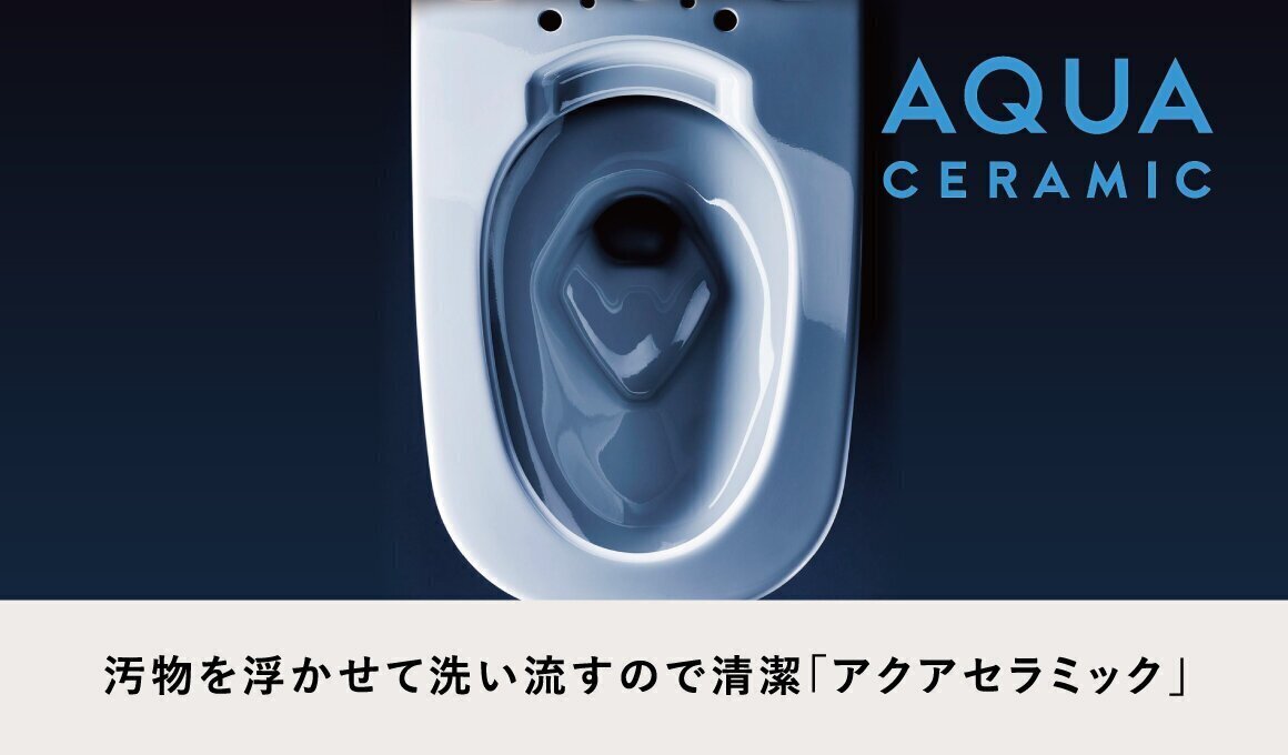 水となじみやすいアクアセラミックは、便器洗浄やお掃除するたびに汚物を浮かせて洗い流すので、お掃除ラクラク。