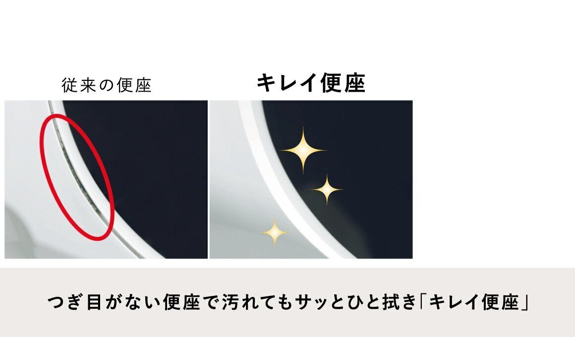 便器のフチを丸ごとなくし、サッとひと拭き、お掃除ラクラクです。