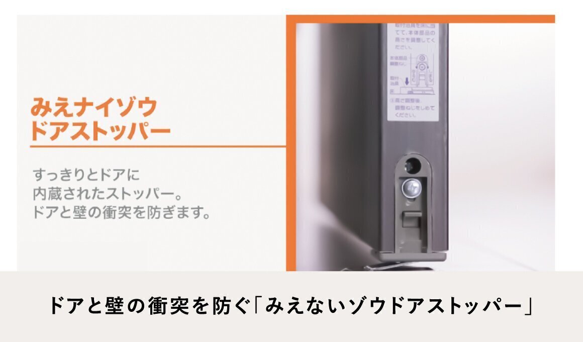 カビやすいゴムパッキンをなくし、汚れがたまりやすいドア下部のガラリ(換気口)を上部に移動することで、汚れにくいドアを実現。