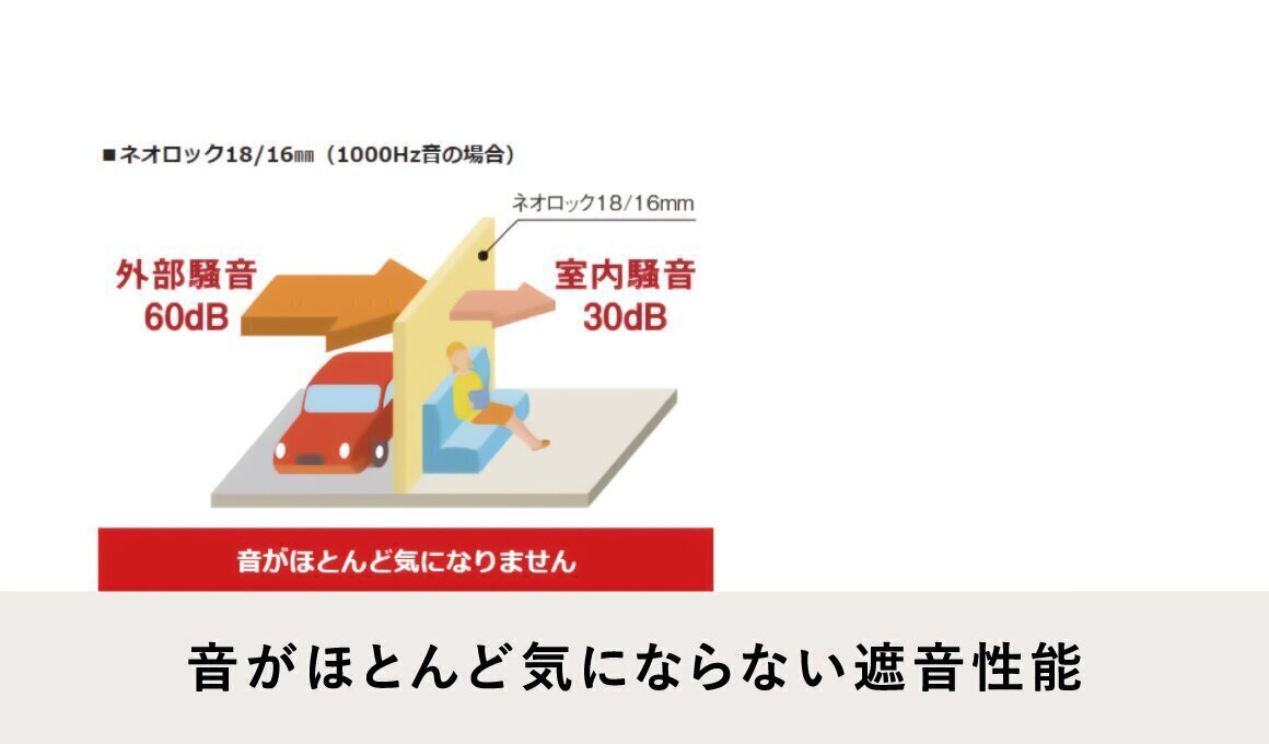 音がほとんど気にならない遮音性能人の耳が最も敏感な250-1000ヘルツの音域で、優れた遮音性能を発揮。外からの騒音はもちろんのこと、中からの生活音の漏れも軽減します。