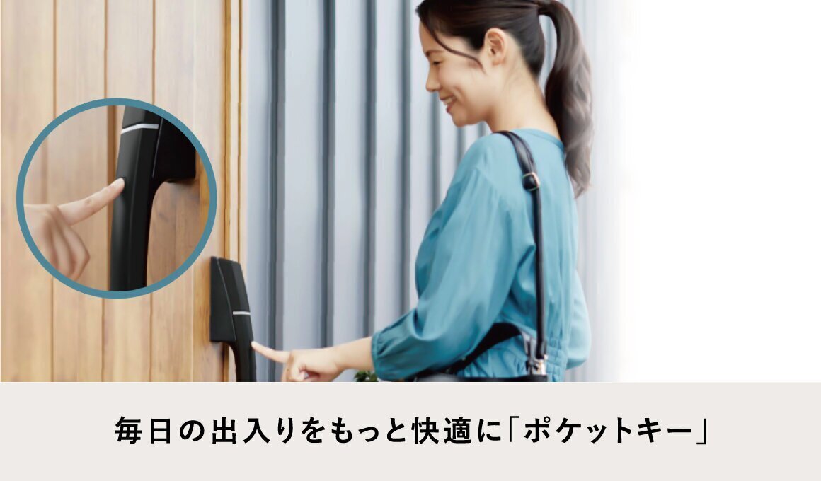 リモコンキーを持っていれば、ドアハンドルのボタンを押すだけで施解錠でき、さらにタグキーがカギになるので毎日の出入りがもっと楽になります。
