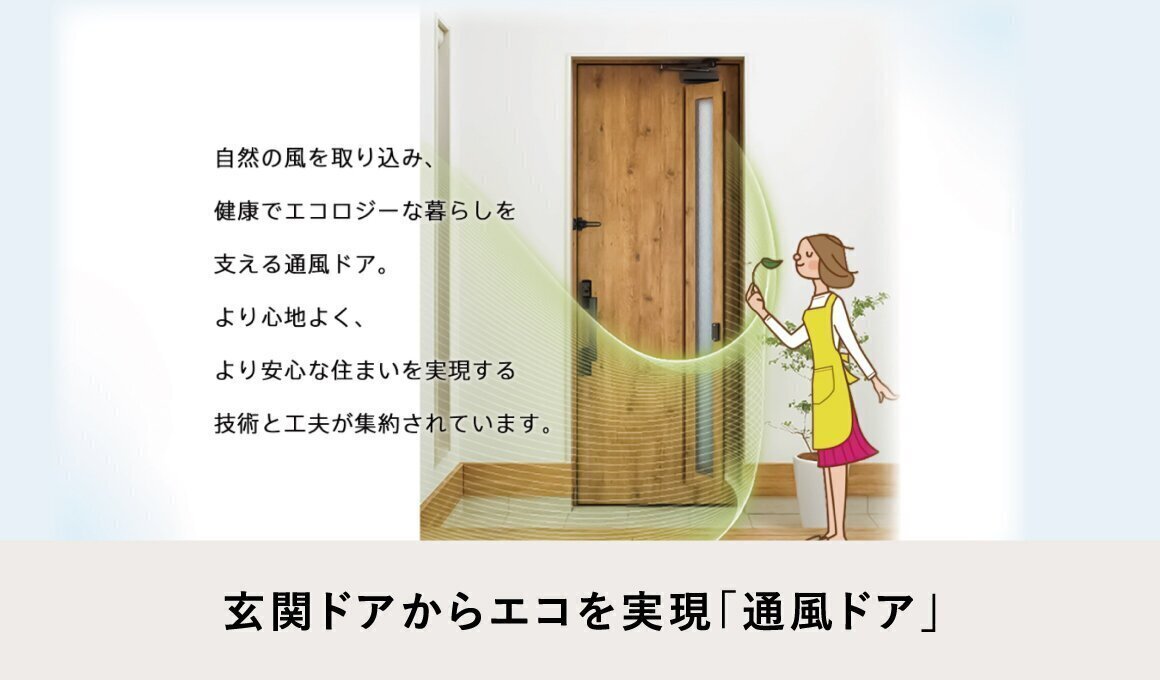窓とあわせて、玄関にも風の入口・出口をつくることで、住戸全体の風の流れを大きくし、快適な暮らしにつながります。