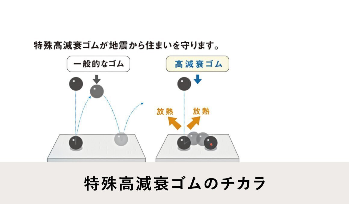 内蔵されている高減衰ゴムは、60年経過しても性能がほとんど変わらず、効果を発揮することを確認しています。