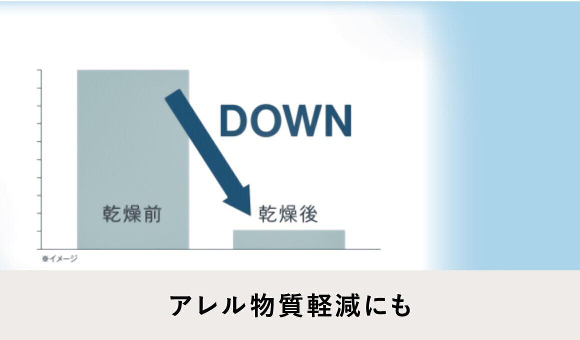 天日干しの後でも、乾太くんで乾燥させることで衣類に付着した花粉中のアレル物質を軽減できます。