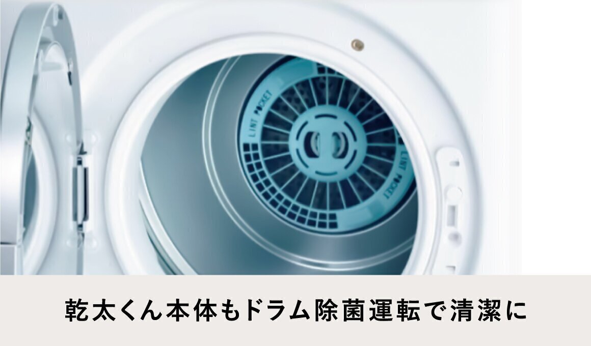 乾燥前にドラム除菌運転を行うことで、ドラム内を清潔に除菌。