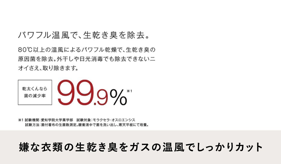 乾太くんなら、80℃以上の温風乾燥でモラクセラ菌の発生を抑制できます。