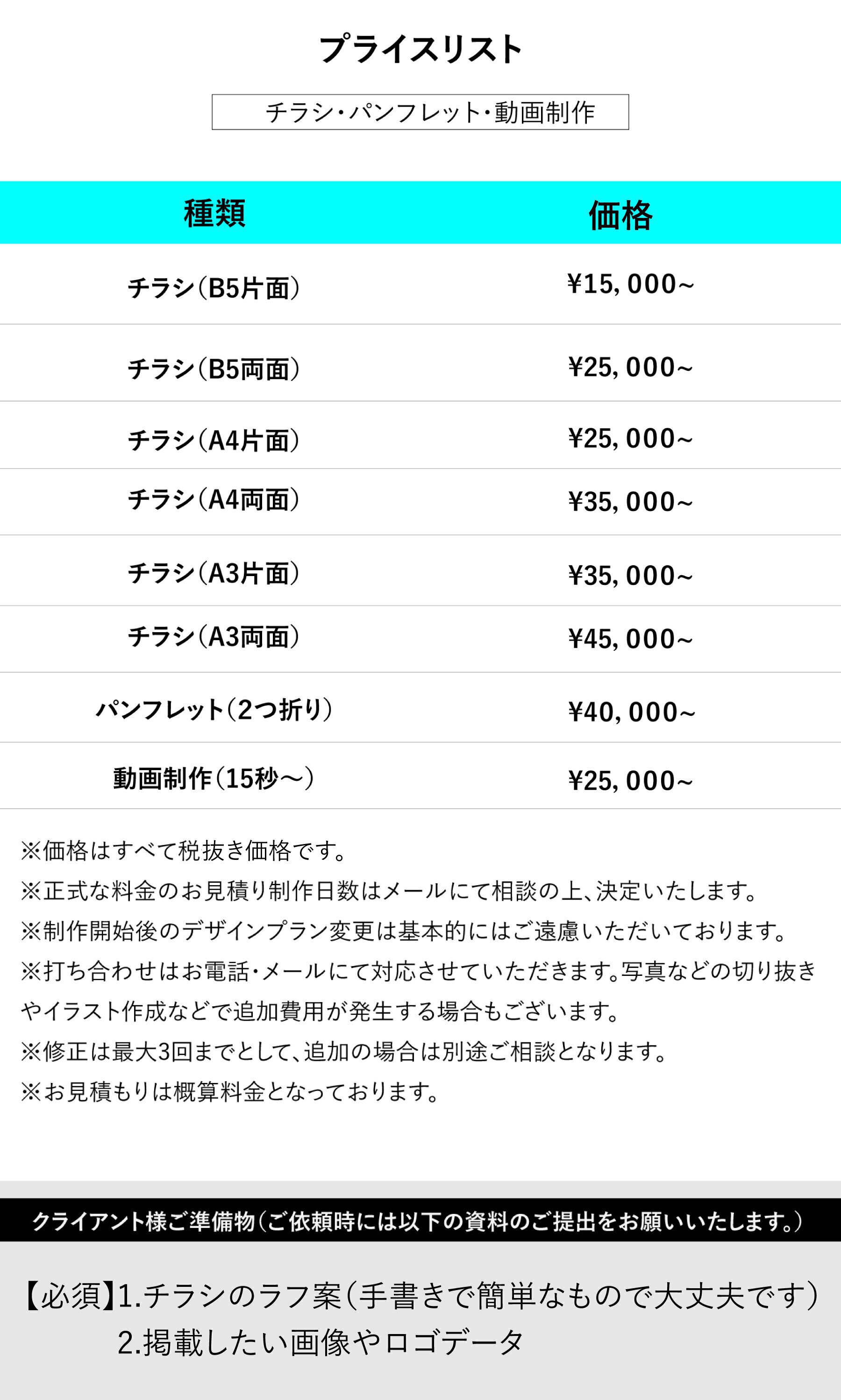 弊社の制作物は、必ずしもその効果を保証するものではありません。お客さまが期待した効果が得られなくても、弊社はお客さまに対して返金対応など行うことできませんのでご了承ください。デザイン制作物の使用・公使により、お客さまと第三者との間に、何らかのトラブルなどが生じても、弊社は一切の責任を負わないものとする。